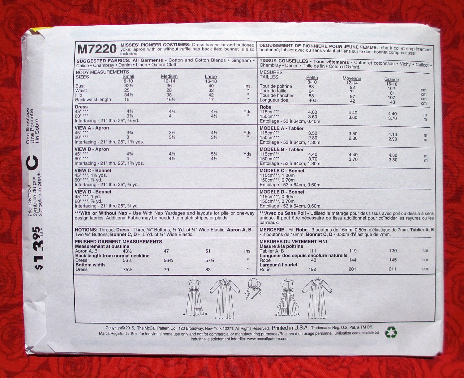 Mccall S Pioneer Costume Sewing Pattern M7220 1800 S Etsy